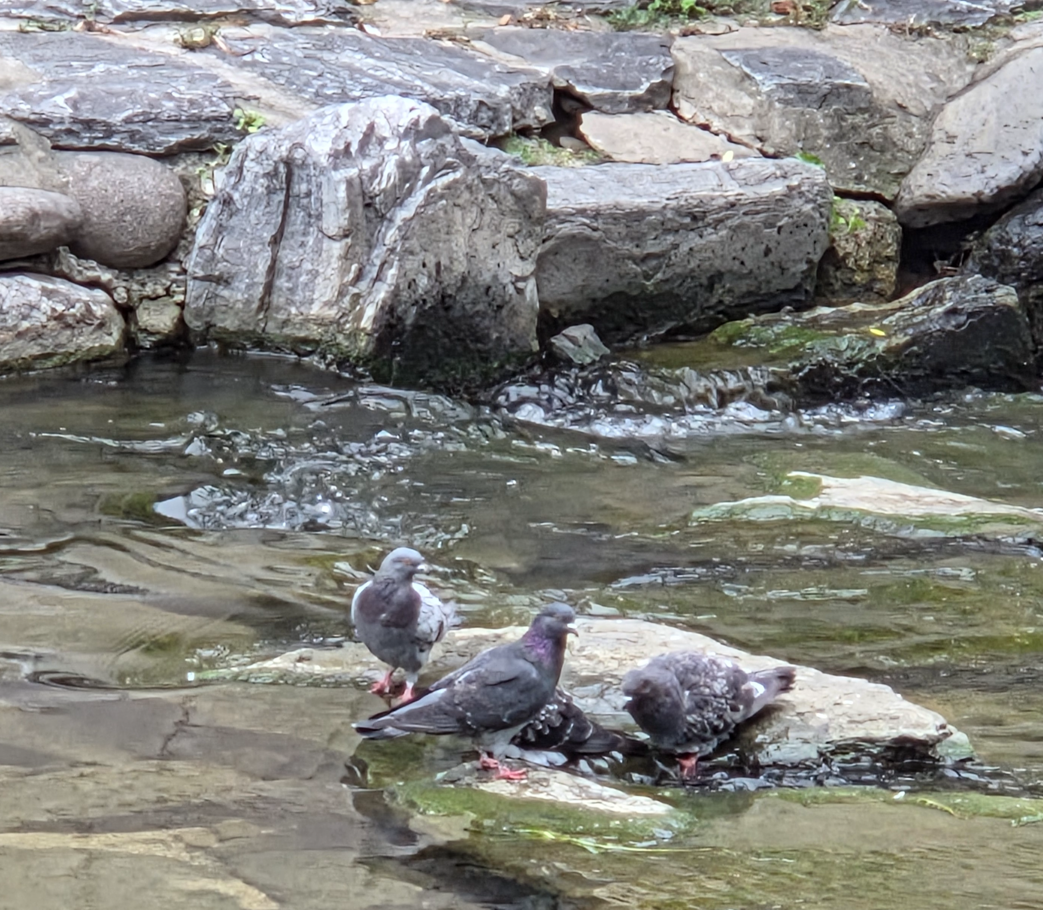 물놀이중인 비둘기들