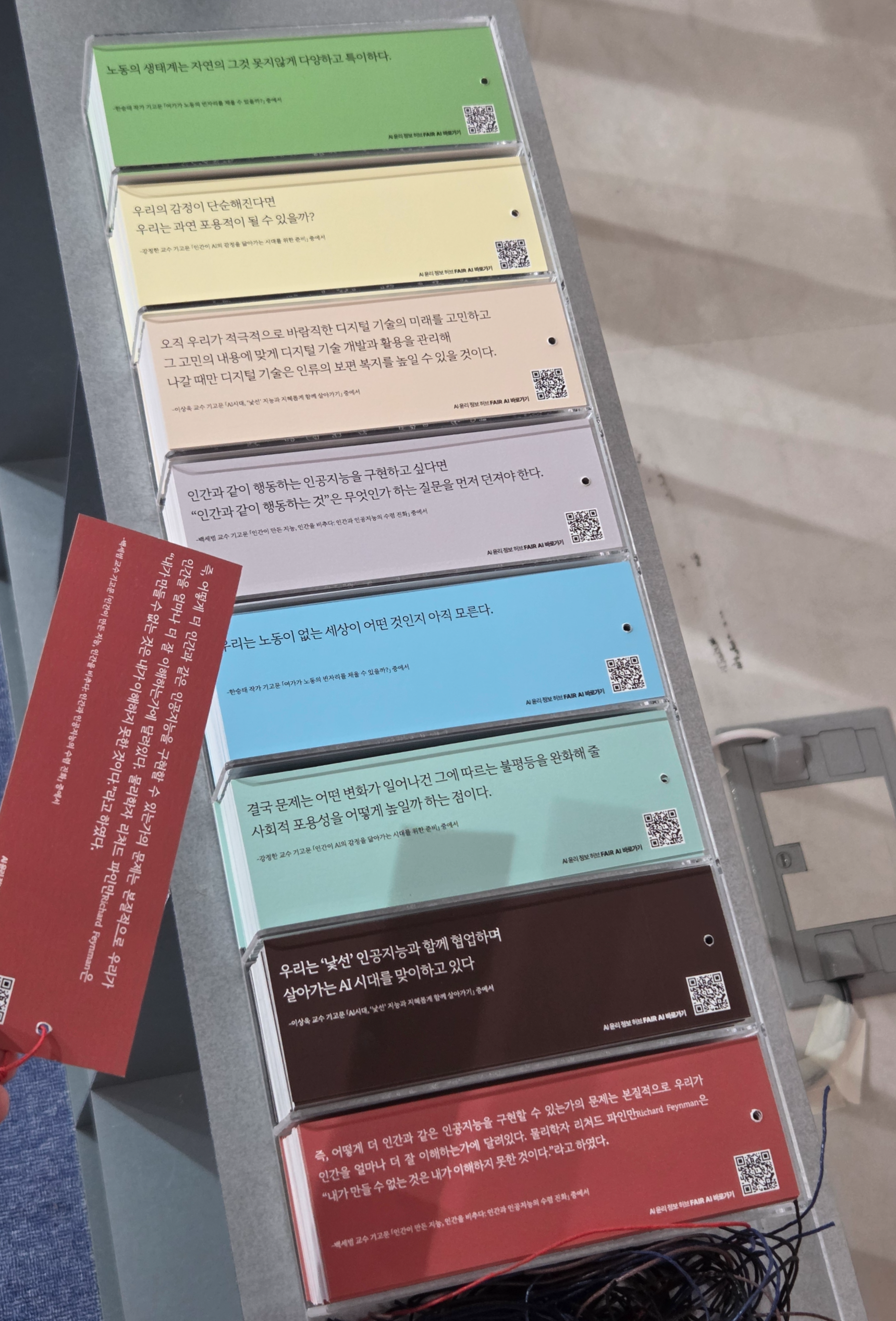 AI와 기술이 놀라운 속도로 발전하는 시대에 '인간다움'이란 무엇인지 인간과 기술을 어떻게 공존하게 할 것인지에 대해 고민하는 흔적들을 볼 수있는 전시였다.